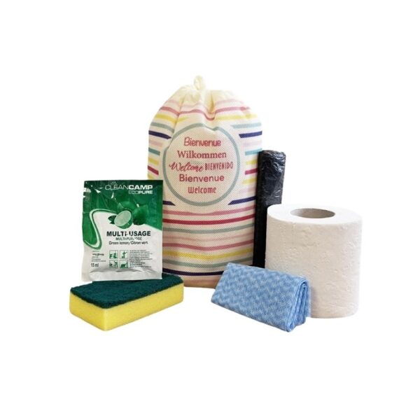Présenté dans un sac non tissé avec cordon de serrage, ce kit réunit tout le nécessaire pour démarrer un séjour en toute sérénité, sans superflu mais avec l’essentiel bien choisi.